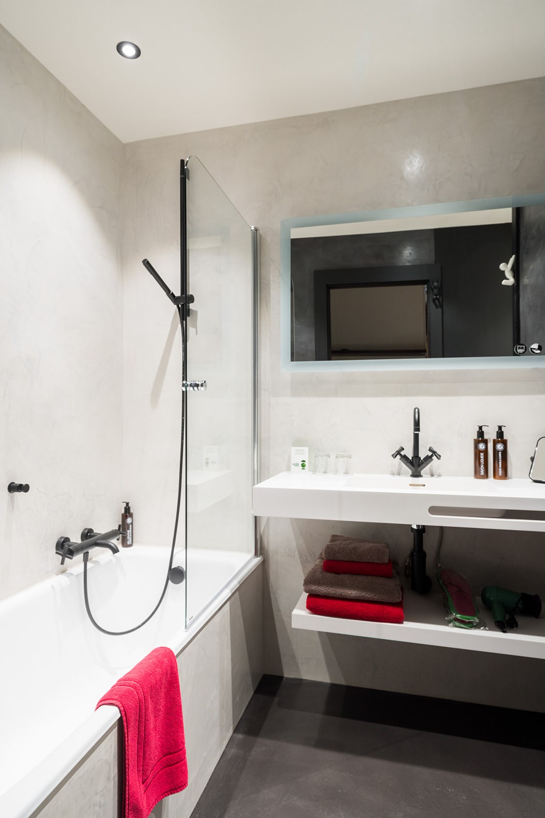• Salle de bains avec baignoire