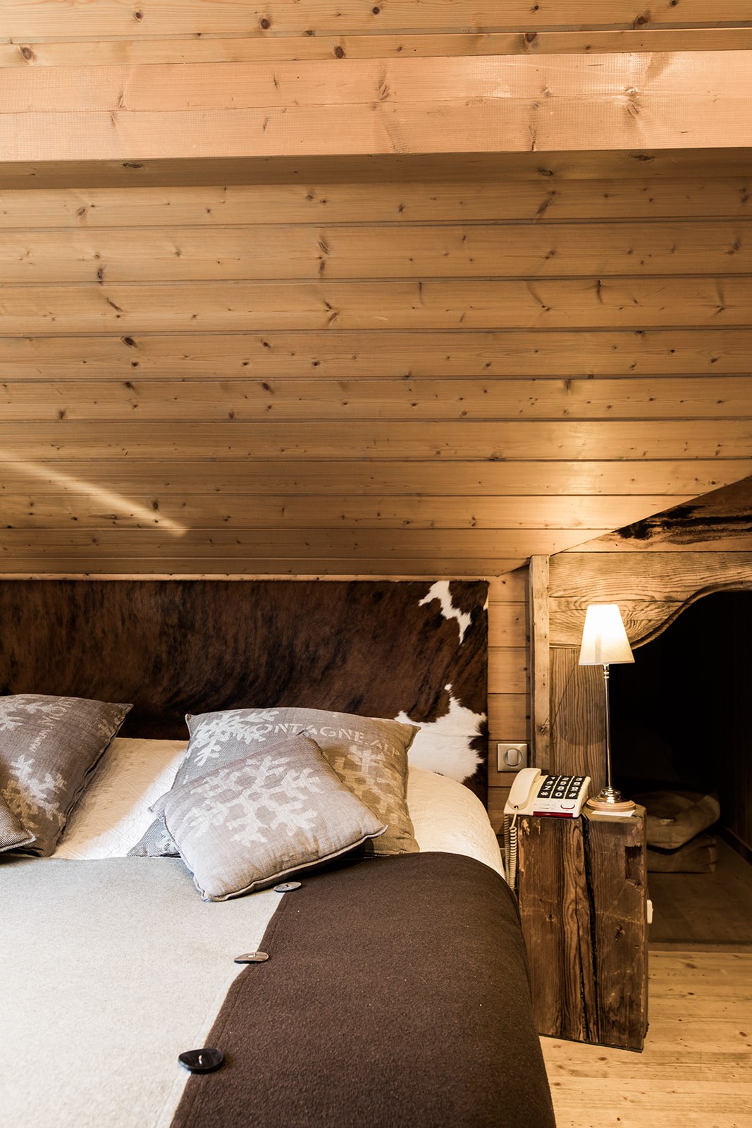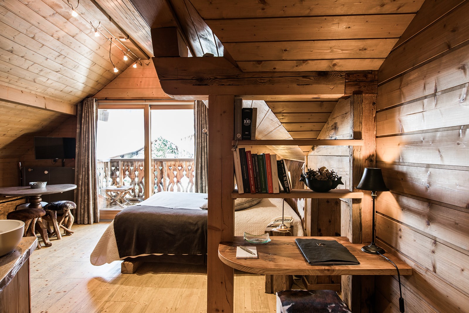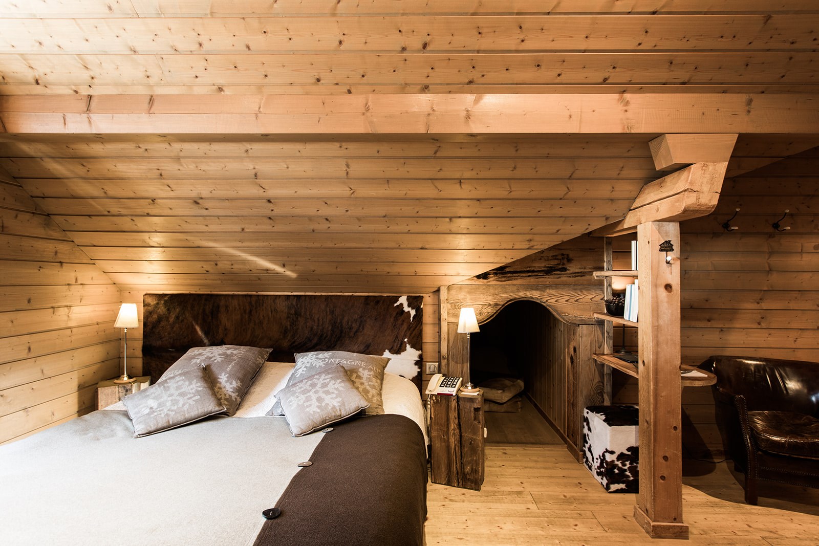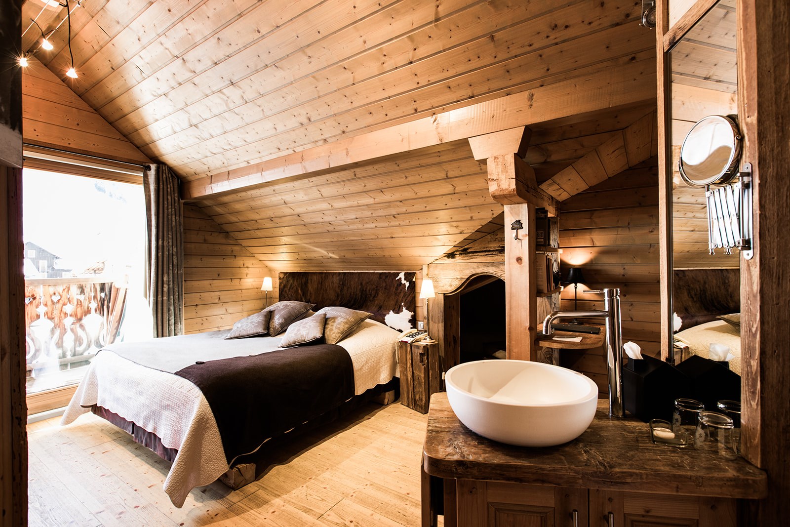 Conçue pour deux adultes et un enfant, elle regorge de détails : salle de bains ouverte avec baignoire Starck® ; petite alcôve pour un enfant, (comme une petite chambre secrète), une kitchenette et une ambiance chalet.