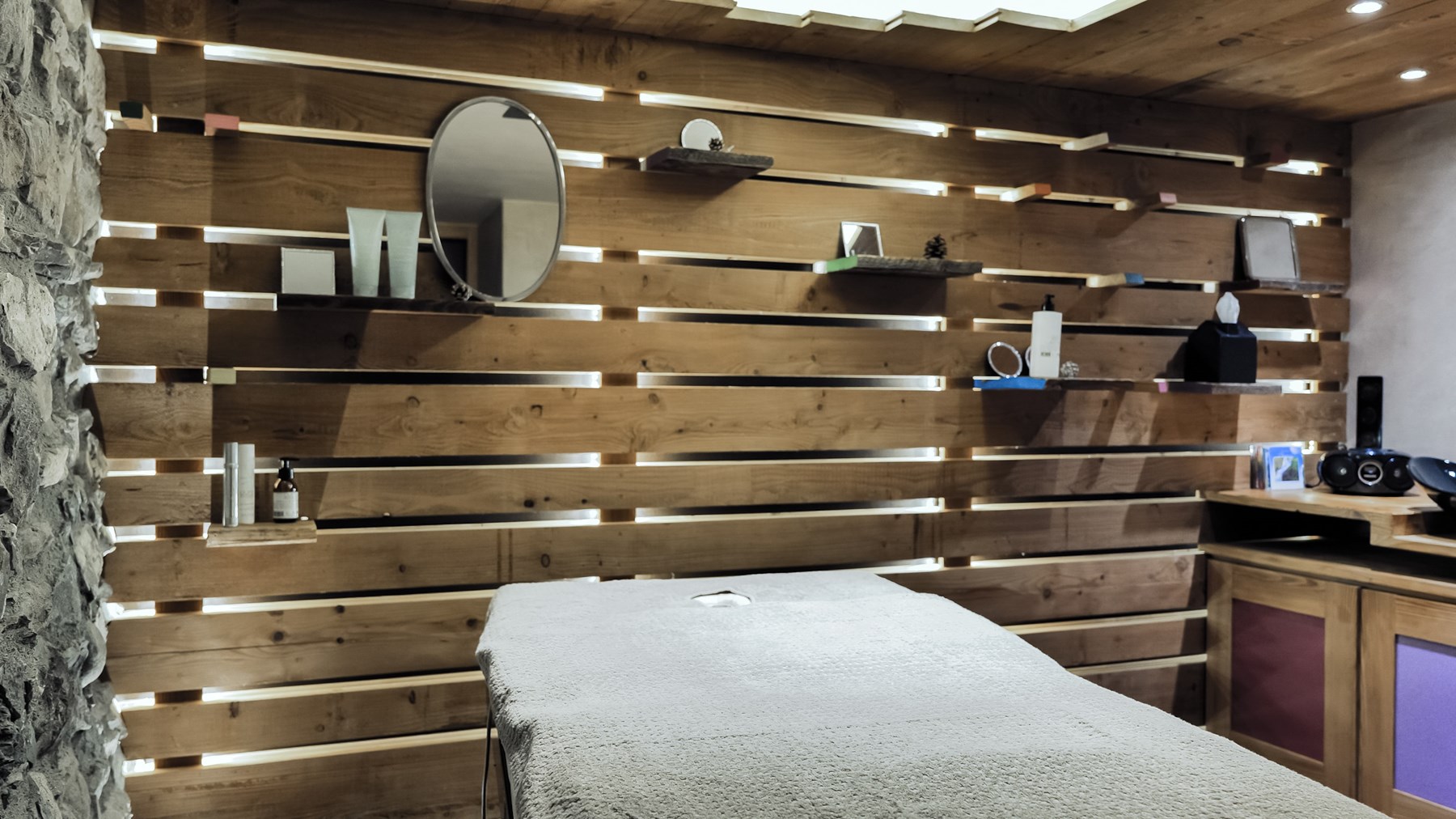 Le sauna est en extérieur, près de la piscine et avec vue sur la montagne. Le Hammam, bain de vapeur, est juste à côté.